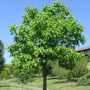 к болезням в целом устойчива.Мощное красивоцветущее дерево экзотического облика с густой широкопирамидальной кроной и стройным стволом, крупными листьями на длинных черешках. Красивые душистые цветки кремово-белой окраски собраны в широкие метелки. Продолжительность цветения 20-25 дней. Плоды - длинные цилиндрические коробочки, украшают дерево со второй половины лета. Крупные листья сильно повреждаются ветром, поэтому желательно сажать в укрытых от ветра местах. Полностью зимостойка.