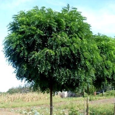 Листопадное дерево с густой, шаровидной кроной. Высота зависит от места прививки. Листья очередные, непарноперистые, из 7-19 листочков, эллиптических или обратнояйцевидных, цельнокрайних, темно-зеленых. Цветет с середины мая до начала июня, белыми, душистыми цветками, собранными в густые, поникшие кисти. Растет быстро.
