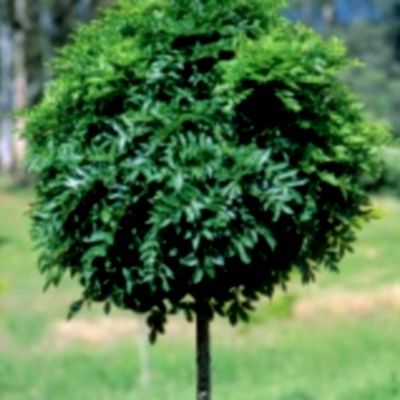 Небольшое деревце, высотой до 6-7 м, шириной 2-4 м, компактное, шаровидное, медленнорастущее. Листья: зеленые, непарноперистые, распускаются поздно. Плоды: отсутствуют. Корневая система: широкая, глубокая, чувствительна к уплотнению. Ясень шаровидный хорошо развивается на освещенных солнечных местах, возможна легкая полутень. Нормально переносит условия городской средыи зимние морозы. Для роста необходимы сухие или свежие почвы, плодородные щелочные субстраты, без избытка влаги.