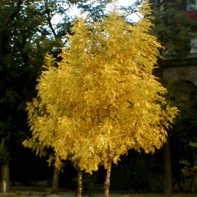 Статное дерево до 15-20 метров в высоту с овальной или округлой редкой кроной, достигающей до 20 метров в ширину. Кора молодых побегов ярко желтая. Ствол уходит высоко в крону. Листья опадающие, супротивные, непарноперистые, 20-40 сантиметров в длину. Листва появляется поздней весной, при распускании зеленая или фиолетово-коричневая, в течении лета желтеет и в конце сентября приобретает изумительную золотую окраску. Пурпурно-красные цветки появляются из чёрных округлых боковых бутонов за несколько недель до распускания листьев. При ранних заморозках листва опадает еще зеленой. Плоды – односемянные орешки 2,5-5 сантиметров в длину с язычковыми узко-продолговатыми крыльями, созревают в сентябре-октябре, часто сохраняются на ветвях до весны.