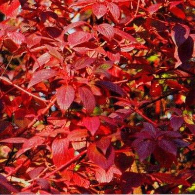 Лиственный кустарник с кроваво красными и бордовыми листьями осенью, которое даже в зимнее время года выглядит привлекательно, выделяясь своей зелёно жёлтой листвой с бордово красными побегами.Крупный кустарник достигает иногда до 7-ми метров высоты с глянцевой зелёной кроной. Плоды съедобные и терпкие на вкус.