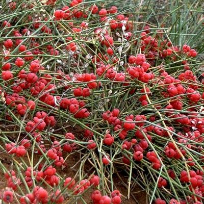 Безлиственный густоветвистый кустарник до 1,5 м высоты, с толстым деревянистым стволом и тонкими прямыми торчащими прутьевидными зелеными веточками. Веточки гладкие, членистые, длиной 20—30 см и с междоузлиями 2—4 см. Листья редуцированные, почти пленчатые, супротивные. Цветки мелкие, собраны в небольшие колоски. Растение двудомное. Плод — односемянная, шаровидно-эллиптическая, мясистая, оранжево-красная шишкоягода. Цветет в мае — июне, семена созревают в июле — августе.